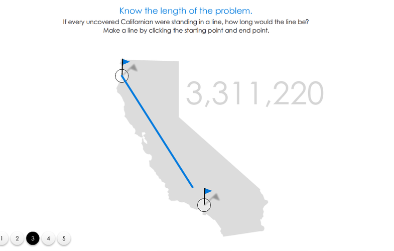 Blue Shield’s Let’s Shield California site puts the focus on California’s 6.7 million people without health insurance. The interactive site is simple and compelling by giving clear examples and surprising statistics like “40% of uninsured Californians have household income over $50,000.”